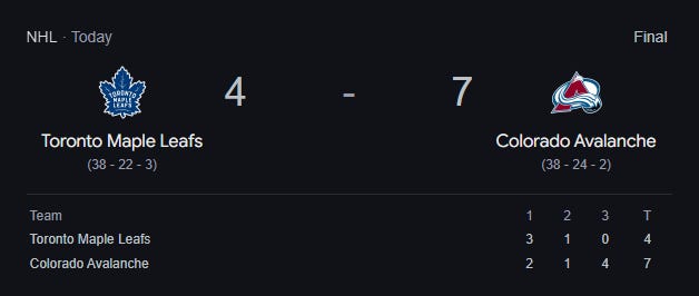 Nichushkin’s Hat Trick Powers Avalanche to 7-4 Victory Over Maple Leafs
