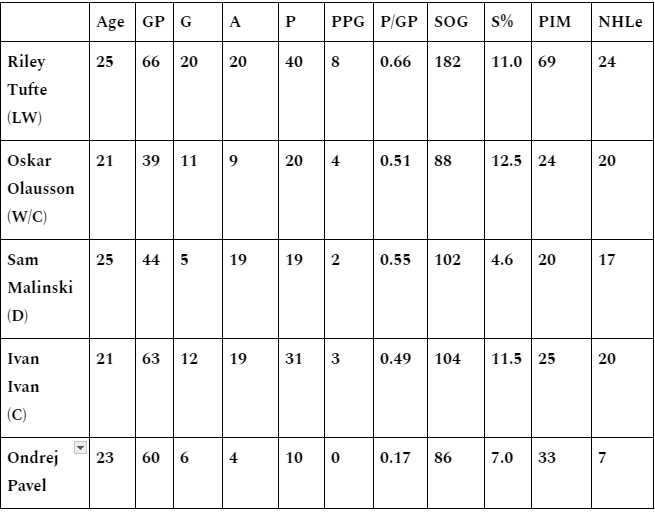 After coming off a rather hot March, Riley Tufte has been ice cold in April. He has only one goal (his only point) in his last six games. If his production wasn't bad enough, his defense on ice could have been better, as he sits at -12 in those previous six games.