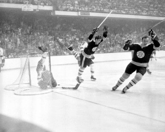 But there is one campaign that seems to rise above the rest. During the Boston Bruins 1969-70 season, Orr netted a remarkable 33 goals and 87 assists in 76 games. He took home the Hart, Norris, Art Ross, and Conn Smythe Trophies and his first Stanley Cup. The Cup was a result of Orr’s most memorable moment — his flying goal.
