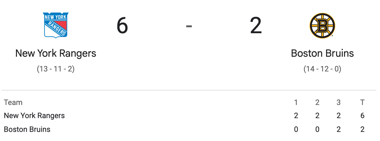 Mittelstadt Scores in Bruins 6-2 Loss to Rangers (NHL.com)