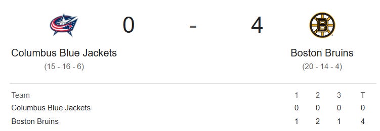 Bruins’ Swayman Perfect in 4-0 Win Over Blue Jackets