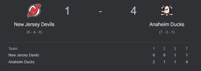 Ducks Take a 4-1 Victory Over Visiting Devils