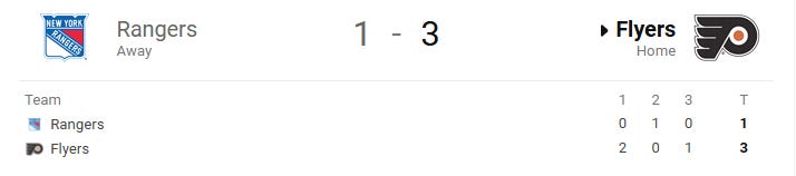 Flyers Stifle Struggling Rangers in 3-1 Black Friday Win