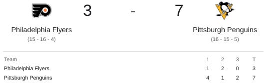 Flyers Lose to Penguins & 3 Up, 3 Down in Philly