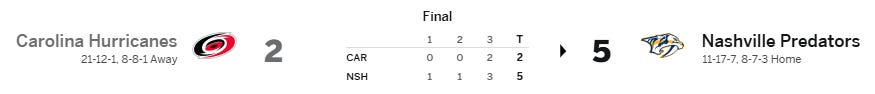Predators Defeat Hurricanes 5-2 in Last Game Before Holiday Break