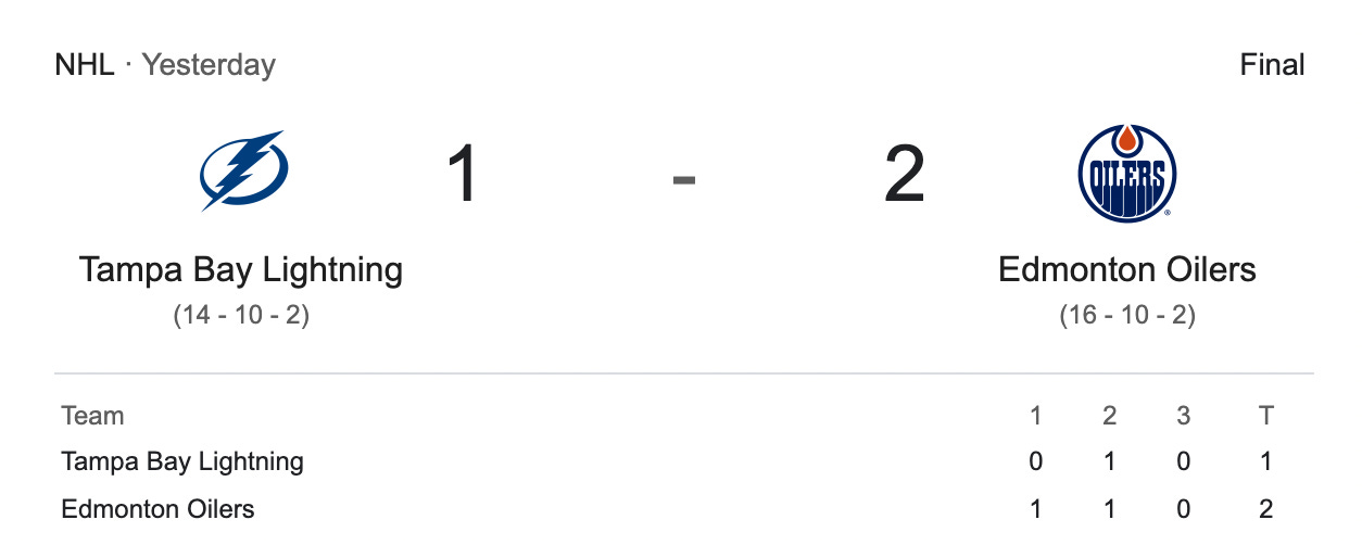 Lightning fall to Oilers, see two-game winning streak end (Bay News 9)