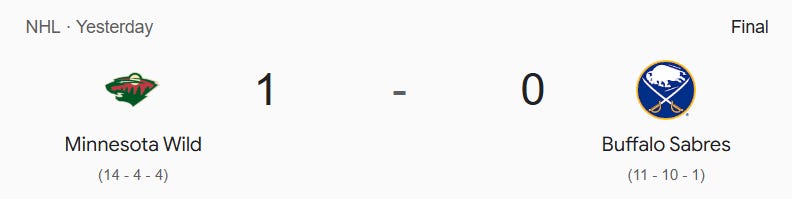 3 Takeaways for the Wild’s 1-0 Win Over the Sabres