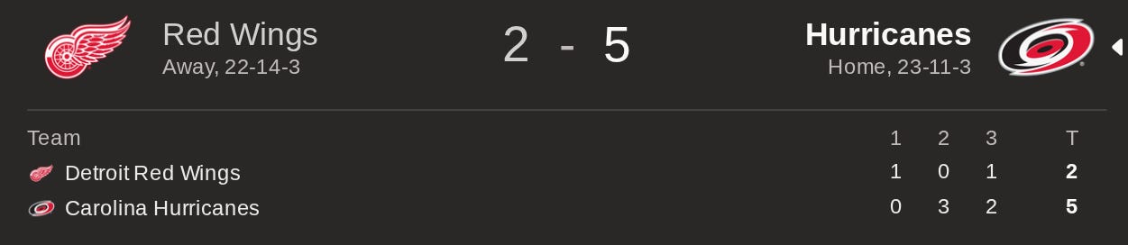 Hurricanes Sit Alone Atop of Eastern Conference with 5-2 Win Over Red Wings