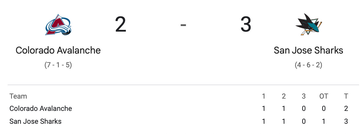 Kurashev’s 2nd goal of game lifts Sharks past Avalanche in OT (NHL.com)