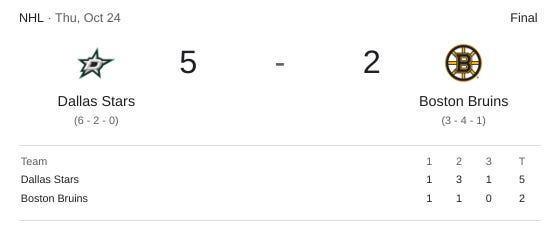NHL Game Recap: Stars Dominate, Defeating The Bruins 5-2