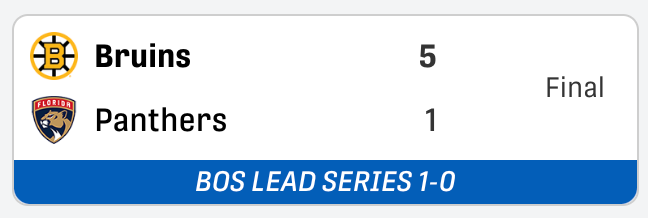 The Boston Bruins jumped out to a 1-0 series lead against the Florida Panthers by stealing a 5-1 victory against the Florida Panthers in Game 1 of their second-round series.