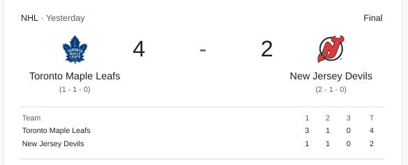 Lorentz, Hildeby lead Maple Leafs to win over Sheldon Keefe's Devils (Sportsnet)